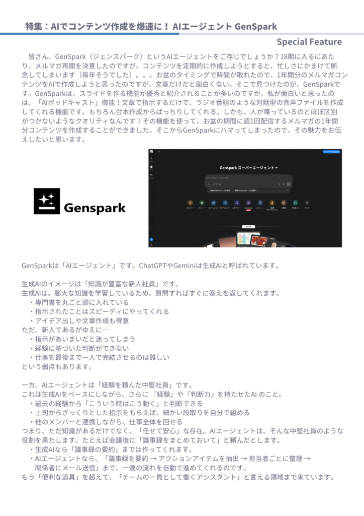 ◆ 特集:AIでコンテンツ作成を爆速に AIエージェント GenSpark