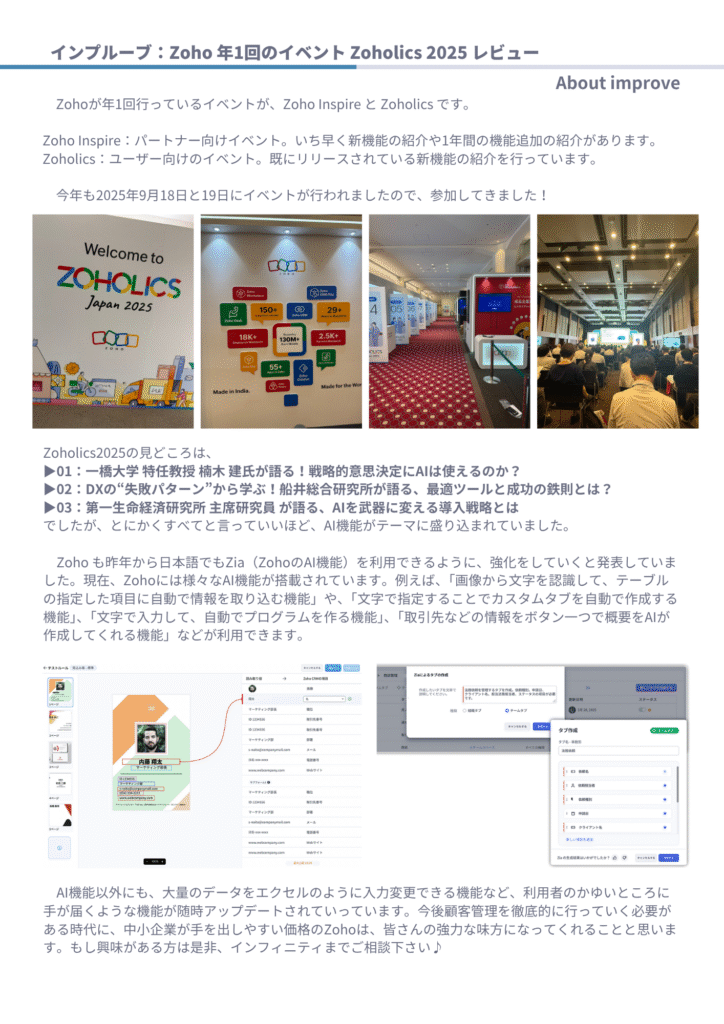 ◆ インプルーブ:Zoho 年1回のイベント Zoholics 2025 レビュー
