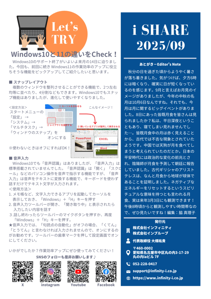 だいぶ朝晩が涼しくなってきた9月、皆さんいかがお過ごしでしょうか。